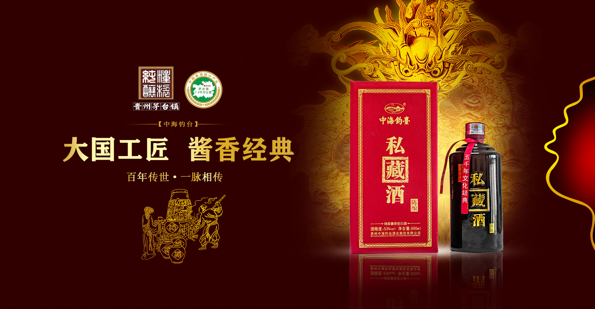 貴州中海釣臺(tái)酒業(yè)股份有限公司原茅臺(tái)鎮(zhèn)千年酒業(yè)有限公司)成立于1999年8月,并已在工商部門登記注冊(cè)。企業(yè)座落于中國(guó)酒都國(guó)酒北路198號(hào)醬香釀酒工業(yè)園區(qū),企業(yè)占地50畝,公司現(xiàn)有職工120人,現(xiàn)擁有基酒廠2個(gè),包裝車間1個(gè),現(xiàn)代化辦公樓1棟,有傳統(tǒng)發(fā)酵窖池76多個(gè),年生產(chǎn)優(yōu)質(zhì)基酒600多噸,有各類儲(chǔ)酒壇罐800多個(gè),儲(chǔ)酒能力4000多噸,有現(xiàn)代化的勾兌、過(guò)濾、灌裝設(shè)備和一流的產(chǎn)品檢驗(yàn)、化驗(yàn)設(shè)備。